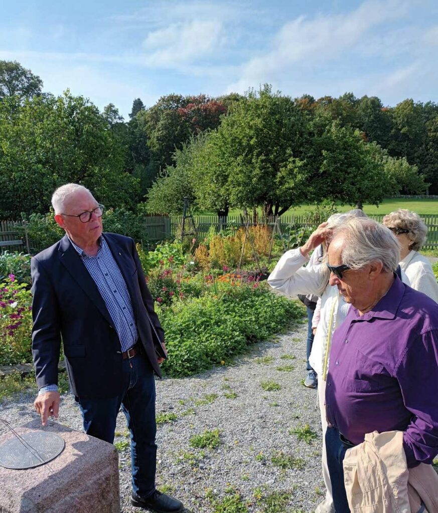 Vi gick en liten sväng in i den trädgård kommunen låtit anlägga och som ska påminna om trädgårdar som fanns på 1700-talet. Därefter avslutades vandringen vid det minnesmärke Malla Silverstolpe lät uppföra efter sin mormor som hade tagit hand om henne då hennes egen mor dog när Malla Silverstolpe var ett par månader gammal. Malla Silverstolpe var en känd kulturpersonlighet som anordnade litterära salonger.